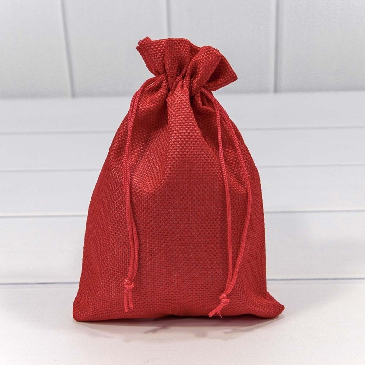 Мешочки из искусственного льна 14*20 см однотонные красный